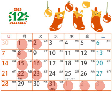 1・2・8・15・16・22・23・31日がお休みとなります。
